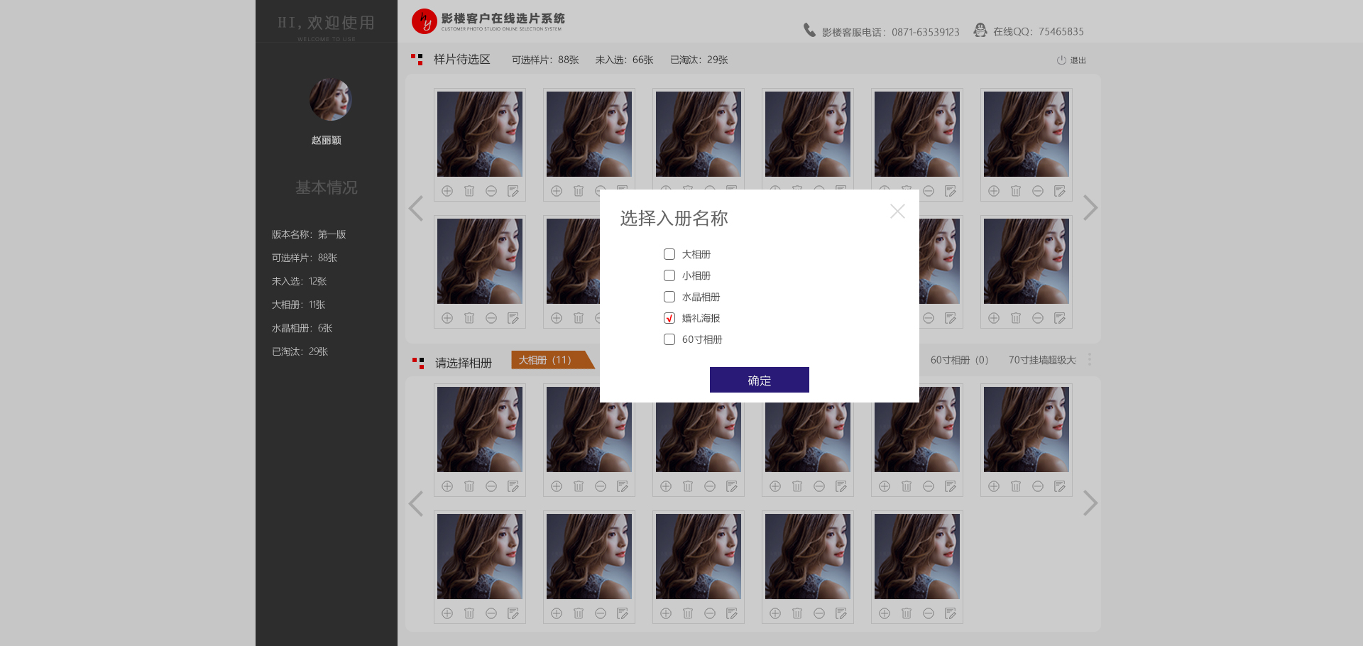 影樓客戶選片軟件網(wǎng)絡(luò)版是一套專業(yè)的影樓專用選片系統(tǒng),影樓只需簡單注冊(cè)即可讓您的客戶足不出戶在家選片,提高影樓競(jìng)爭力。打亂照片順序,獨(dú)創(chuàng)強(qiáng)制淘汰式選片